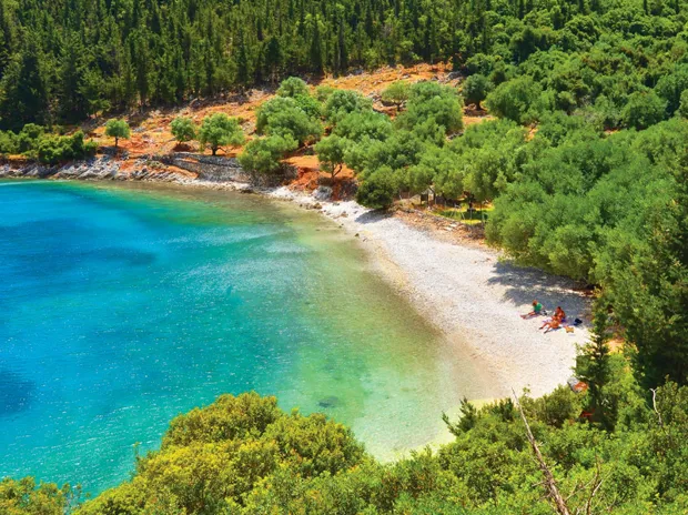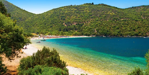 Surrounded by hills, the clear waters of this lovely white pebble beach, as seen in Captain Corelli’s Mandolin, are ideal for snorkelling. There are also beach bars, sunbeds and watersports on offer.