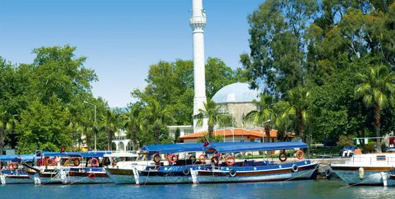 The river from which charming Dalyan, meaning ‘fishing weir’, takes its name, is the essence of life in this relaxed, friendly town. Little boats glide through reed-green waters, upstream to the warm springs promising to cure all manner of ailments, down to the estuary and famous Iztuzu beach, just a 45-minute boat ride from Dalyan harbour.