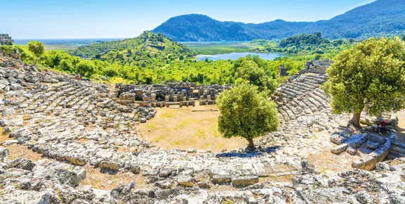 Pull on your walking boots and explore the impressive ruins of Kaunos, where relics dating from 900 BC have been discovered. Behind the waterside rock tombs, you’ll find an amphitheatre, Roman baths and a temple dedicated to Apollo, son of Zeus.