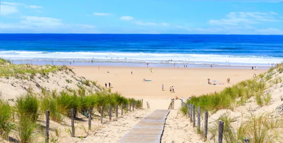 Near Piraillan and a ten-minute drive from Cap Ferret, the beach is accessible via the Avenue du Truc Vert, along a lovely forest walk up and over the dune.