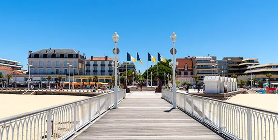 Extending along the Boulevard de la Plage, between piers Eyrac and Thiers, the beach is right in front of the town itself.