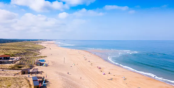 From Hossegor town it's a 3.5 km cycle ride or short drive beyond the lake. The beach is accessed from Place des Estagnots where there's a free car park.