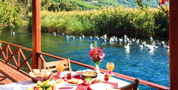 Akyaka is also a place for picnics. Take a visit to the daily food market to pick up supplies and then choose a spot by the river or down by the sea in the shade of the pine trees.
