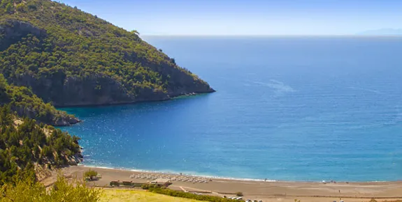 Around a 1.5-hour drive south of Dalyan, this very pretty beach lies at the end of a steep, winding road.