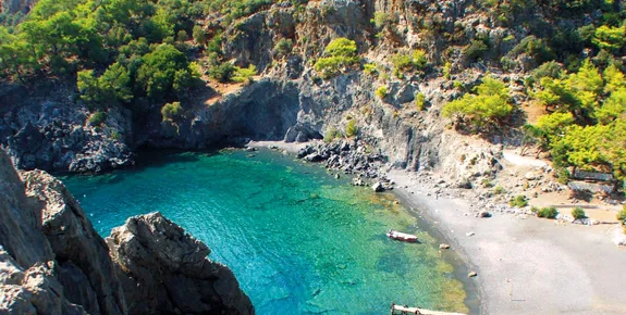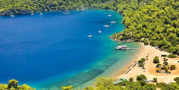This curve of dark sand and shingle is a popular stop-off point for boat trips that also include a barbecue lunch on the beach and a visit to the nearby Ekincik caves.