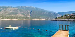 Kalkan is well known for its beach clubs, which are built out on platforms over the sea, with ladders for easy swimming access. Sunbeds, parasols and bar/restaurant service are generally provided.