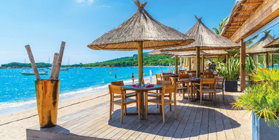 Kick back with the international jet set, who come to be seen and indulge in fine dining along this long stretch of sand, shaded by pines and with sunbeds to hire.