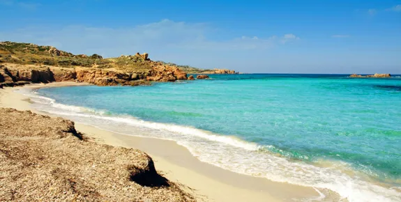 The beach and its many popular restaurants draw the crowds in summer, but there’s usually plenty of room for everyone with the sands continuing onto Tamaricciu beach, just across the lagoon.