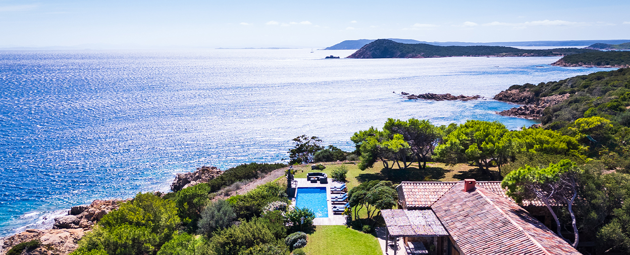 Like the old defensive Genoese watch towers that still stand sentinel all around the Corsican coast, Villa Carlo Anto sits in an exceptional location on its own mini peninsula, equidistant between Porto Vecchio and Bonifacio. You’re surrounded by emerald and sapphire sea on three sides, close enough to hear the hypnotic murmur of waves rolling onto rocks below and far enough from everything else that nothing can disturb your privacy and peace.