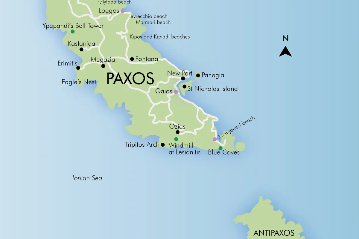 It’s just 7km north of Gaios. Follow the east-coast road signed for Lakka and Monodendri beach.