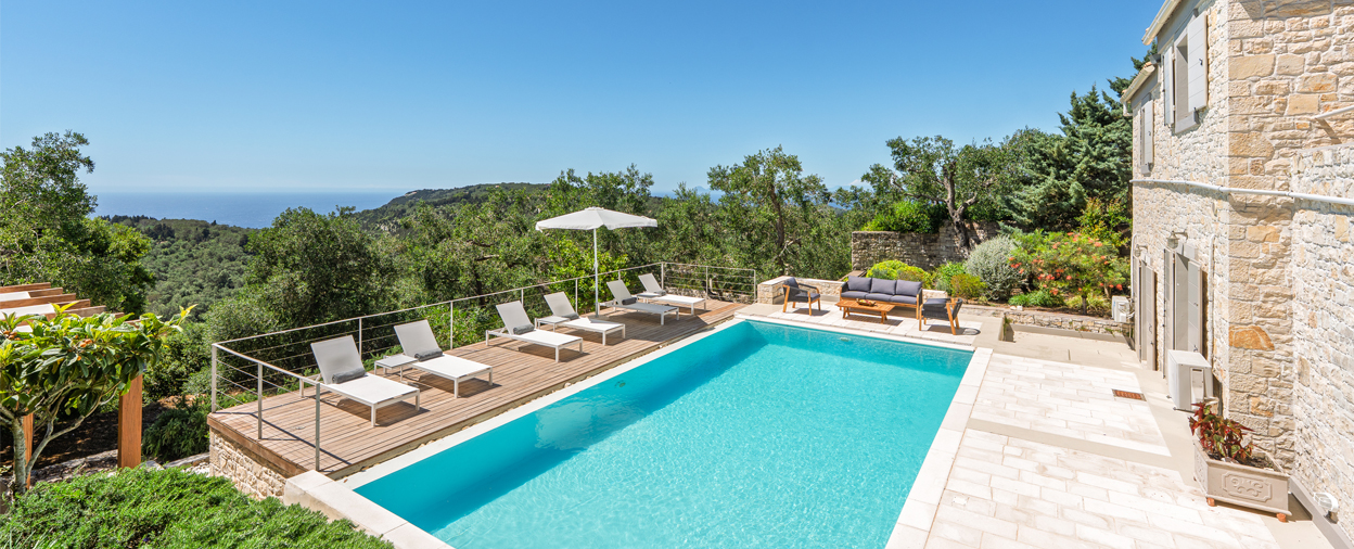 Kallista's glorious sea views are mainly thanks to its slightly elevated position, surrounded by cypress, fruit and olive trees. The villa changed hands recently and the new owners have set out to make the outdoor space as comfortably appealing as the stylish interiors, adding a new summer kitchen for al fresco cooking and wooden decking to extend your relaxing space around the pool, making this one of the finest places on Paxos to enjoy a spectacular Ionian sunset.