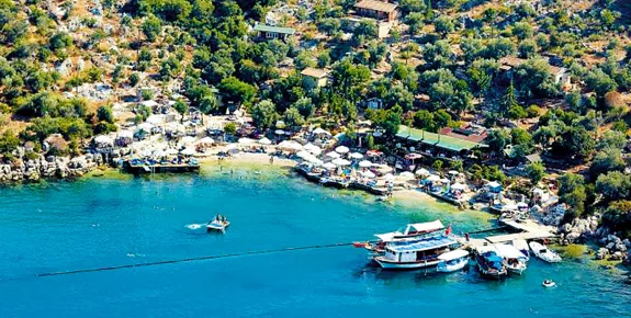 Accessible by boat from Kaş harbour, Limanağizi is a shingle beach that’s popular with Turkish visitors. Four beach clubs share this beautiful stretch of coast and there are good restaurants on the beach.