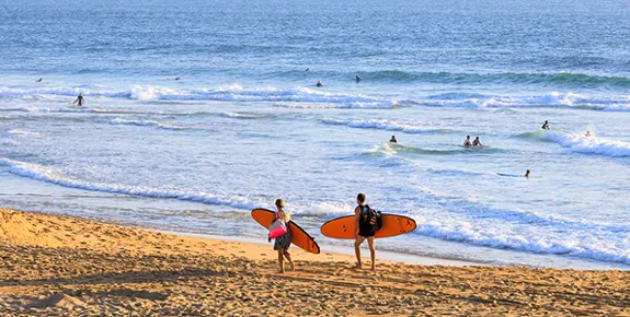 From Hossegor town it's a 3.5 km cycle ride or short drive beyond the lake. The beach is accessed from Place des Estagnots where there's a free car park.