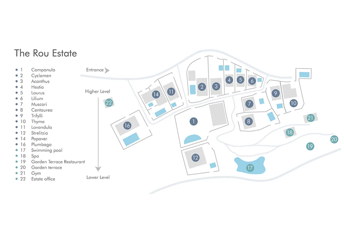 The Rou Estate is perfect for peace and tranquillity whilst enjoying spectacular views, beautiful surroundings, homely and comfortable villas and wonderful facilities like the Spa, the large communal pool and the café. The staff all work very hard to make sure one's stay is memorable – they are discreet but on hand whenever you need them. We keep coming back as nothing in Europe compares to this corner of Corfu.