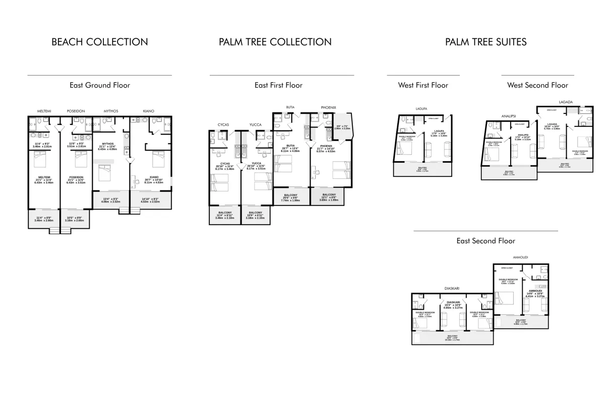 • Four first-floor rooms (23m2) with balconies overlooking the sea