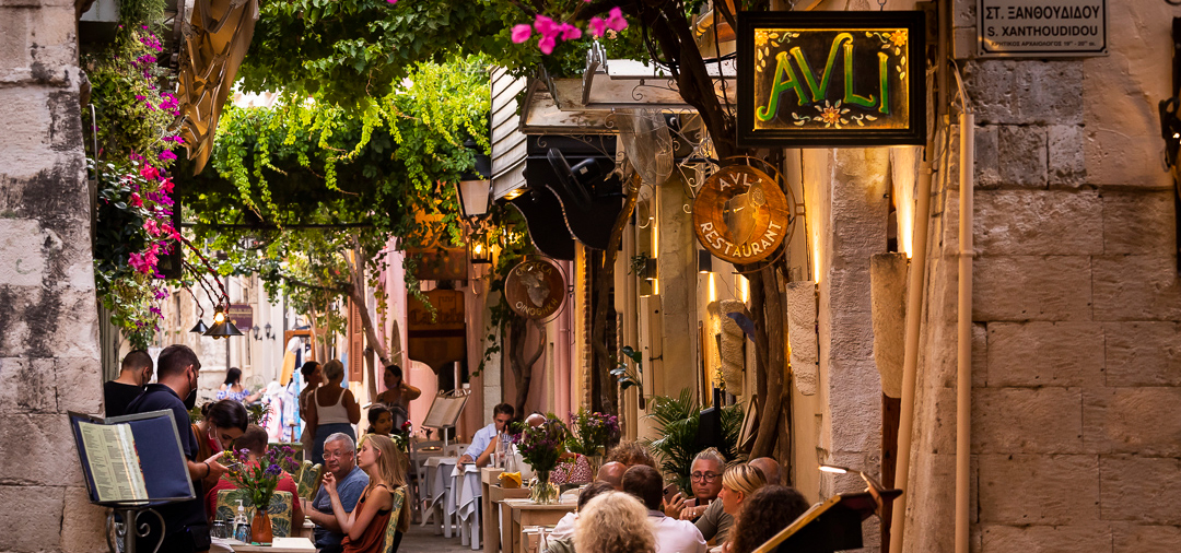 Outside, it’s a privilege to be amongst such a vital community. The tables of the hotel’s excellent meze restaurant line the street and the jovial soundscape of animated chatter is underscored by the sensual rhythms of salsa and Latin jazz playing in the background. The hotel is also home to a well-stocked bar with a tempting selection of Cretan and international wines (tasting sessions are available) and Avli’s fine-dining restaurant is world renowned. The enchanting courtyard setting, brimming with bougainvillea, jasmine and roses, is almost as fragrant and delicious as the dishes that appear before you. Immaculately presented and beautifully served, the tasting and pairing menus are not to be missed, with waiting staff and the hotel sommelier on hand to add insight and guidance to the exquisite flavour combinations.