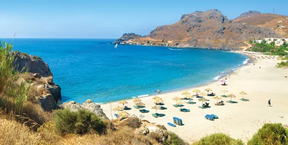 Set in picturesque Plakias, 35km south of Rethymno, this sandy, gently shelving beach comes with sunbeds, parasols, watersports and a number of good tavernas. It’s a great family option.