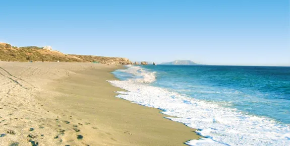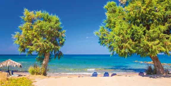 The eastern end of the longest single stretch of sandy beach in Crete, just 15km from Rethymno, contains numerous cantinas with sunbeds and umbrellas.