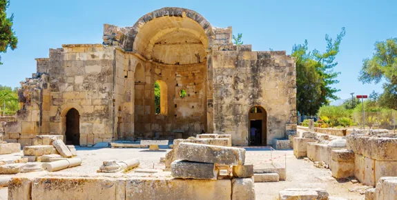 Famous for its engraved wall, which is the oldest and most complete example of a code of ancient Greek law, Gortys is also the site of 6th-century ruin, St Titus Cathedral, and a tree where Zeus is supposed to have had his wicked way with Europa.