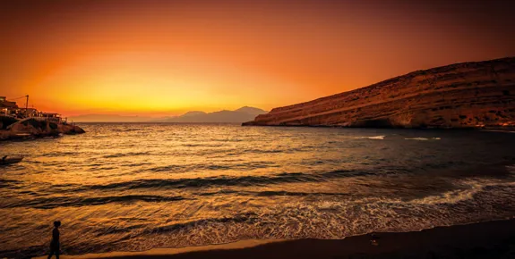 Almost as far south as you can go on Crete, ‘Red Beach’ – named after the colour of its sands – is the site of the famous caves, once home to singer-songwriter Joni Mitchell.