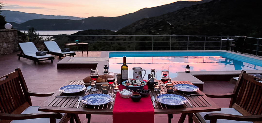 p>Our first experience of Ithaca was sitting in one of the waterside tavernas watching a Greek wedding taking place. A magical start to a magical week. Our second day was spent as a very lazy Sunday relaxing by the pool and enjoying the wonderful views and atmosphere. We have loved everything about Ithaca – the views, spectacular scenery, the food, the friendliness of the locals. The best day was exploring Ithaca from the sea on a boat – the whole eastern coast from top to bottom. Huge thanks to Greta for her efficiency and knowledge. Our experience from start to finish has been well organised and professional. We will definitely use Simpson Travel again.