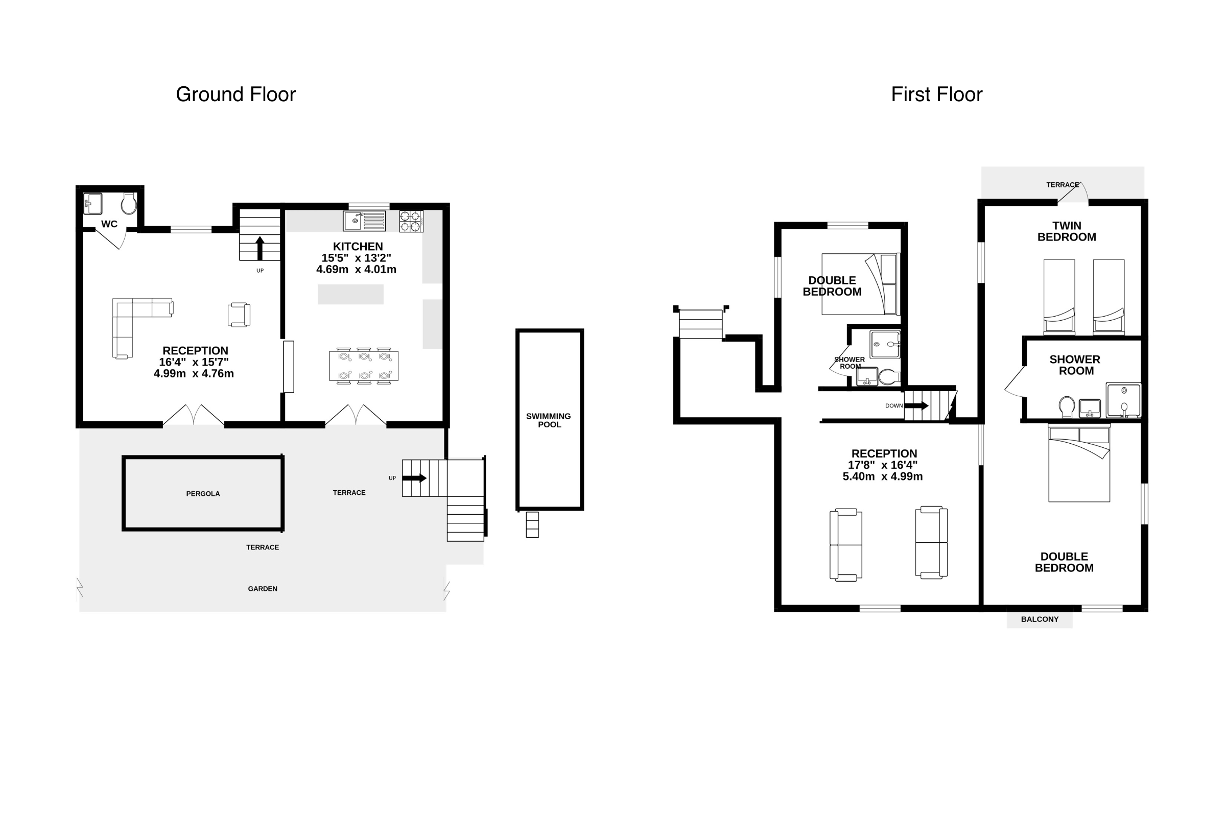 - Bedroom 3 - Twin bedroom (2 x 90cm beds); leads to terrace