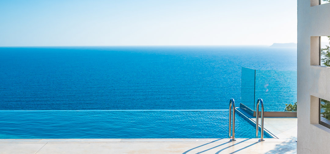 Blue Infinity sits just below The Glass House and Blue Ionian; they can be rented separately, or together for a larger party.