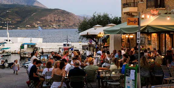 Food always tastes better by the sea, and you’ll find a great choice of waterside dining all around the coast. Our personal favourite dining spots are Stoupa and Agios Nikolaos in the Mani, and Gialova and Pylos on the west Messinian coast. Kardamyli village has a lovely leafy square, ideal for a drink and a spot of people watching after you've toured the Old Town or explored the tempting little boutique shops. You can also find a really generous spread up in the mountain villages – ask your concierge for recommendations, and they’ll be happy to make a booking for you.