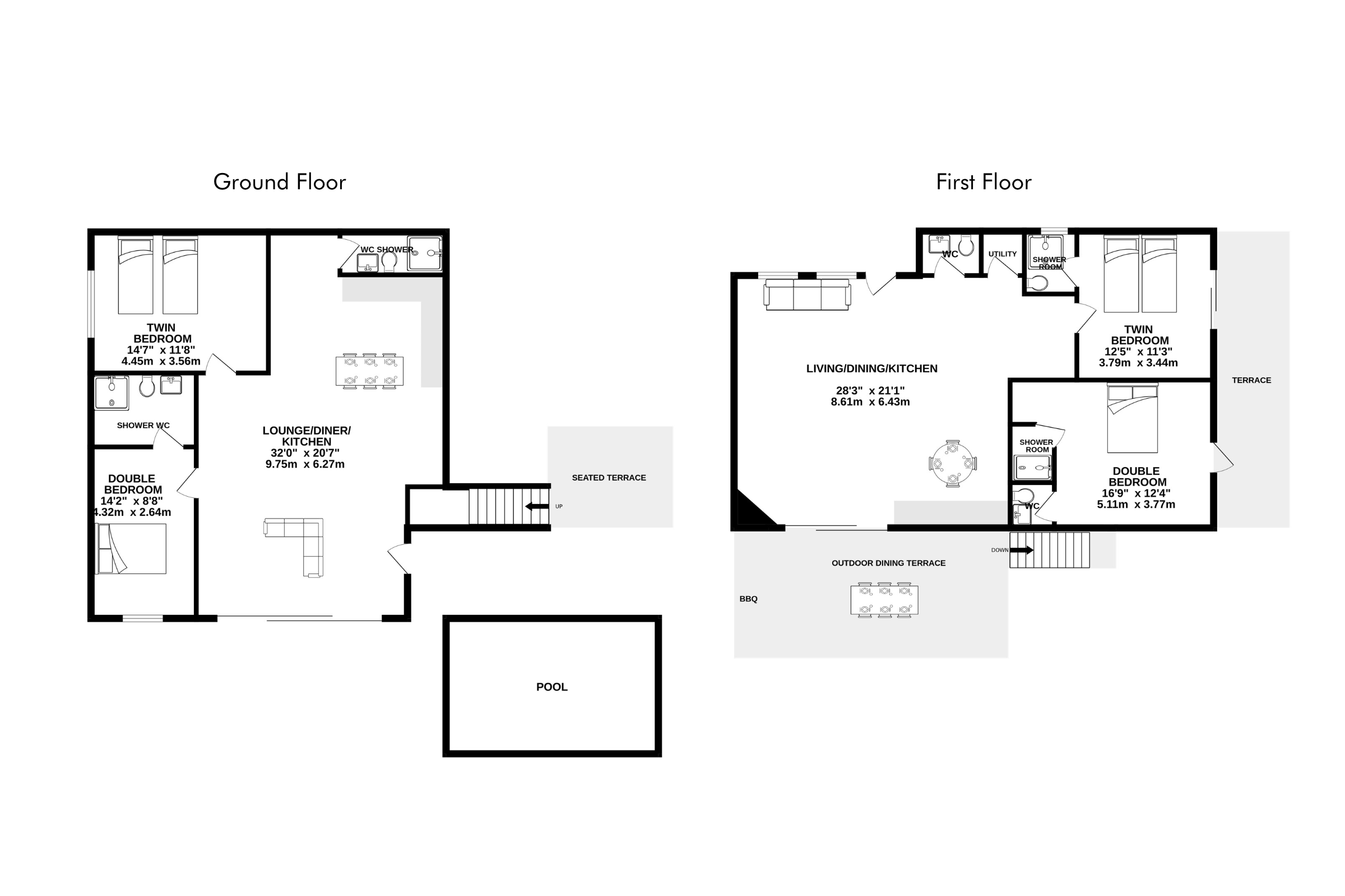 - Private swimming pool 8m x 4m (depth 1.45m), access via ladder