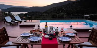 The local cuisine offers a typically Greek combination of simple flavours, home-grown produce and fruits of the sea to create one of the world’s healthiest diets – food that’s easily enjoyed from the terrace of your villa with a view to die for and skin still warm from the sun. A variety of small mezedes starts the proceedings. These divine dips include soft-roasted aubergine mashed with garlic, tangy feta cheese whipped with chilli, stuffed vine leaves and courgette flowers. The freshest meat and fish follow, cooked simply on the grill or baked to perfection. It is unthinkable to eat without a bowl of fresh salad drenched in olive oil; always seasonal and with few ingredients to ensure the taste of each shines.