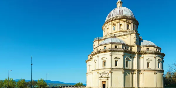 Built between 1508 and 1607 where some miraculous recoveries had occurred, the 'temple of consolation' is one of the highest examples of Renaissance art in Umbria. Its design is based upon the Greek cross and characterised by five cupolas (one central and one at each apsis). The light and airy interiors house statues of Pope Martino of Todi and of the 12 Apostles. In the northern apse, by the Baroque altar, is an image of the Virgin holding the Infant Jesus.