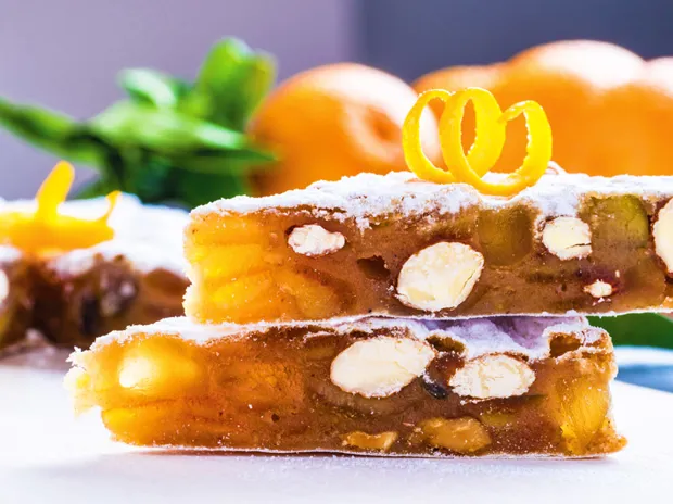Generally reserved for special festivities or religious ceremonies, traditional oven-baked Umbrian desserts often include almonds, spices, honey, or candied fruit. Panpepato is a cake eaten across the region, while ciaramicola is unique to Perugia and traditionally baked for Easter. Umbria’s chocolate-producing history dates back to 1907, with the making of Baci from ground hazelnuts and dark chocolate.