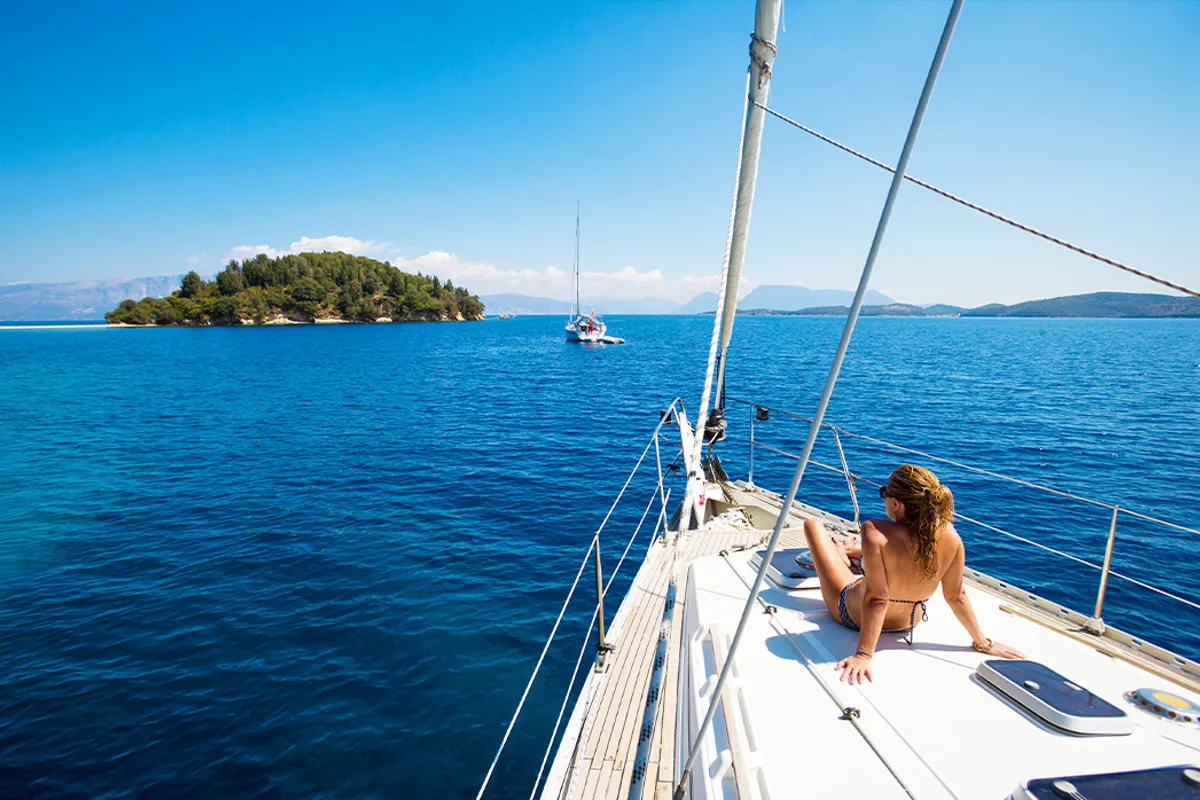 Spend a dream day on the glittering Ionian exploring secluded bays and tiny islands only reachable by boat. This is a luxurious and fully skippered charter, with lunch and kayaks included plus the option to help sail if you wish to.