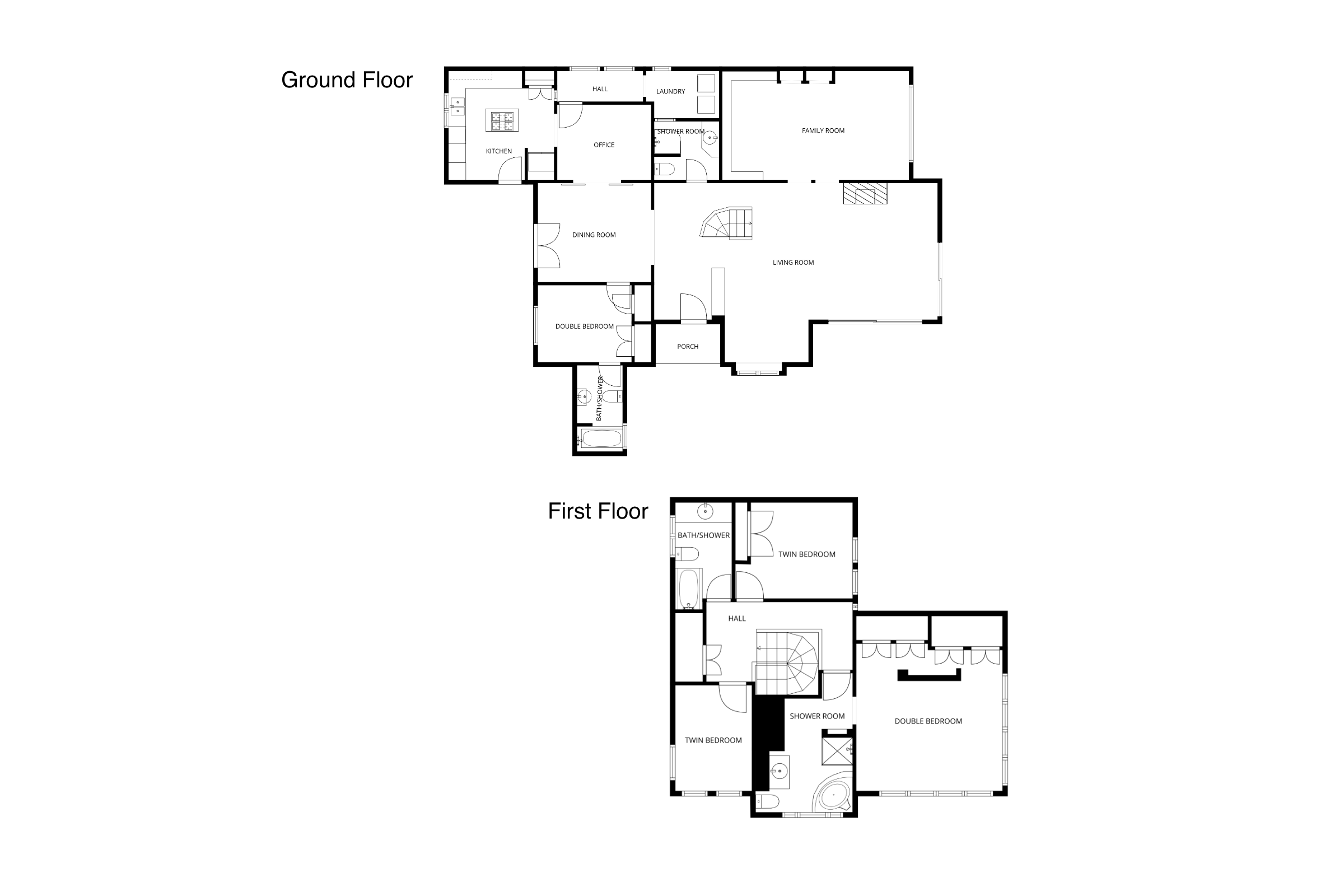 - Double bedroom (180cm bed) with en suite bath and shower room with WC