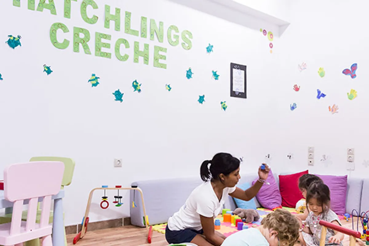 No sooner have I asked the question than Simpson's very own Childcare Manager is calling me direct to talk through the set-up. There are two rooms, she tells me, one for up to 3s, another for 4+. It’s a relief that Martha and Freddie will be together. It’s also comforting to know that drop-off and pick-ups are more flexible than I’m used to with Martha’s UK nursery. Leisurely breakfasts and extended poolside lunches with mum and dad are a-okay. As for Freddie’s entertainment, there’s an activity planner of stuff he’ll love—soft play, hand printing, messy play, story time, you name it.