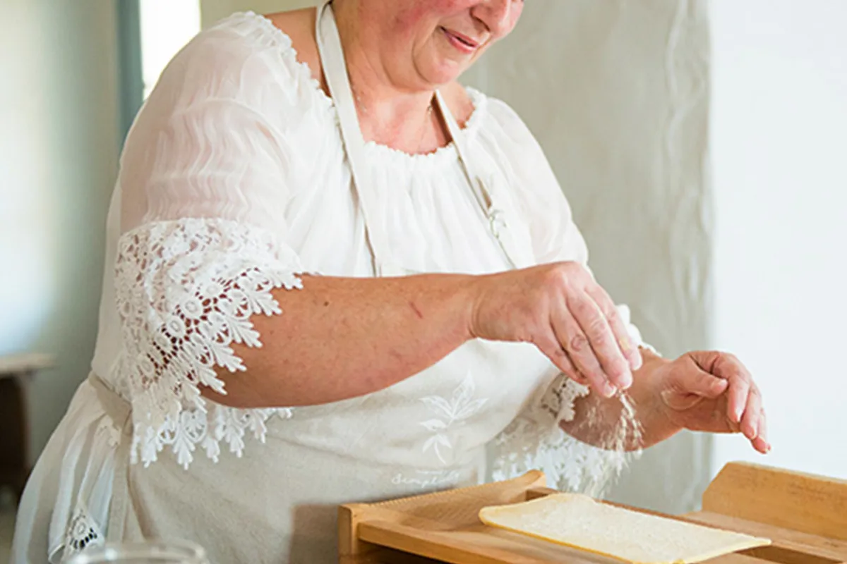 Once a week at our beautiful Masseria we invite guests to prepare dinner with the incomparable Lucrezia. I always say Lucrezia cannot be described; everything about her is revealed at the time of the first meeting but suffice to say she is our cook, our friend and an Apulian housewife whose local knowledge spans generations. She brings the sun into the kitchen of the Masseria, with her lively eyes, broad smile and contagious laugh and it is a great pleasure to spend an afternoon with her, discovering her secrets and enjoying her expertise. She will teach you how to prepare traditional dishes according to the recipes learned from her grandmother, using fresh local ingredients from our countryside, and though some may forget how to make the taralli, orecchiette and tiramisú, they will surely remember her irrepressible humour.