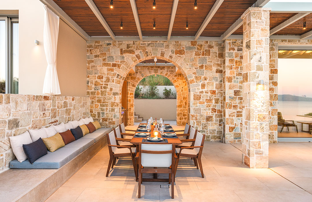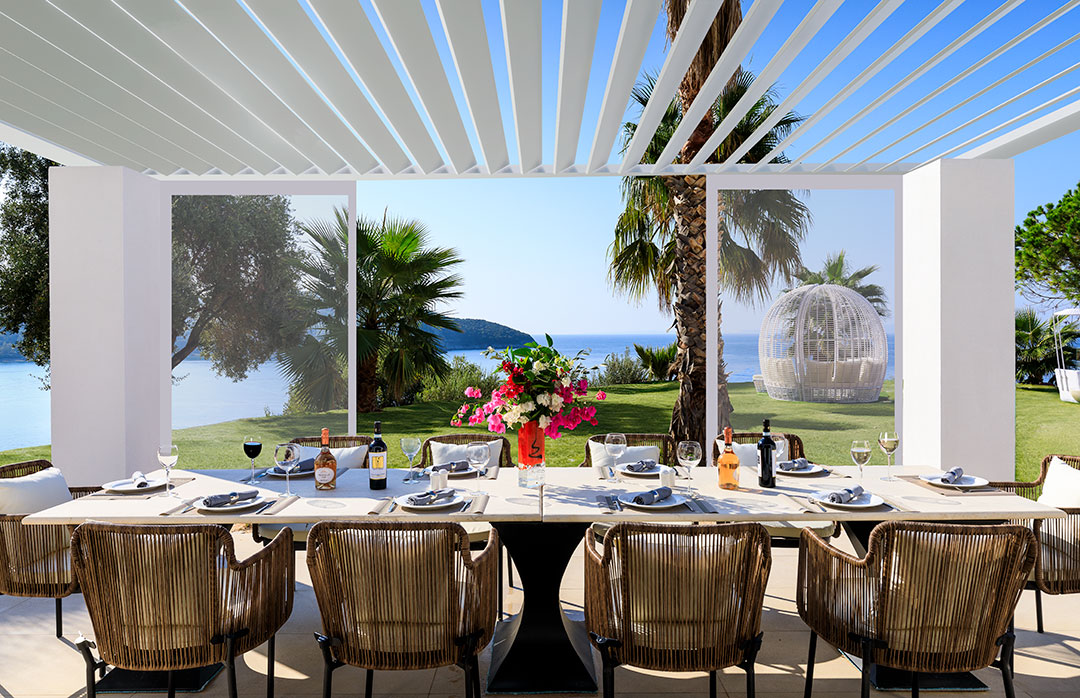 "A truly stunning villa perched above the turquoise waters of the Ionian Sea with glorious views across to Paxos, Antipaxos and Corfu. The indoor areas are beautifully appointed and air-conditioned, but it is the outdoor space with large pool, comfortable furniture (sunbeds, parasols, seating), and 'al fresco' kitchen that steals the show; direct beach access is an additional treat." Dr Adrian Hobbs, Ionian Green.