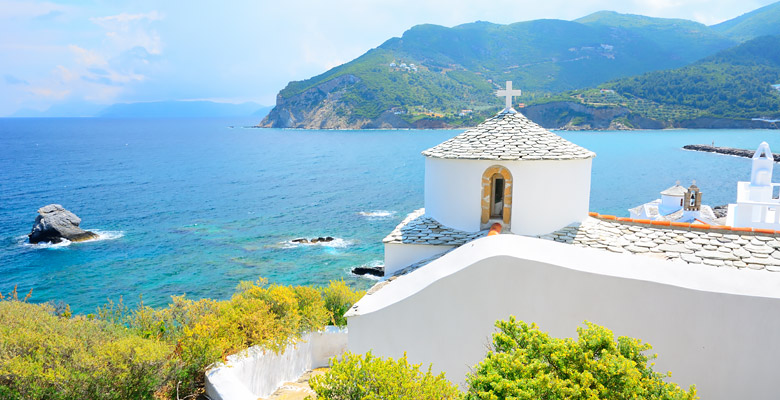 Skopelos is wonderfully green, unspoilt and peaceful, with beaches to suit everyone. Discover quietly romantic coves by boat, or if you like your seaside facilities, head for Panormos, Milia and Kastani, which have sunbeds, watersports and beach bars for your comfort. Skopelos Town is picture-postcard Greece, and a Traditional Settlement of Outstanding Beauty. Pretty white houses wreathed in bougainvillea line narrow cobbled streets that wind steeply down to the harbour. There are just enough tavernas, restaurants and speciality shops to keep things interesting without being over-developed - the perfect Greek island holiday destination for those in search of friendly authenticity with a dash of sophistication.