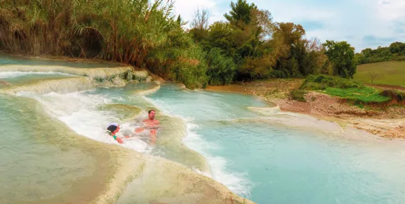 Tuscany, and the Siena province in particular, is bubbling with mineral-rich thermal baths, as nature intended or with graceful architecture and spa complexes attached. For natural hot springs to ease away stresses and strains, there’s Saturnia, an hour from Siena and Petriolo, 20 minutes away.
